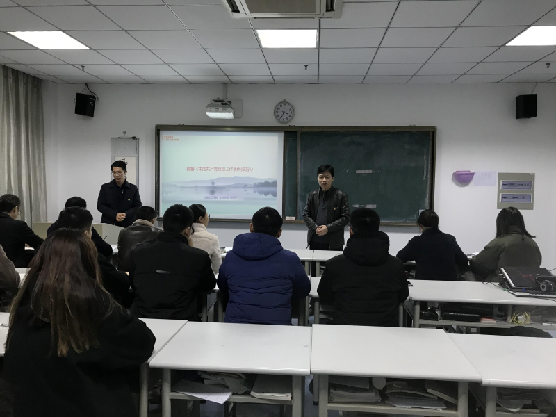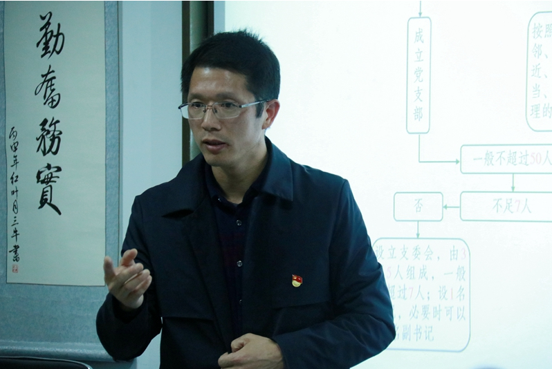吴荷平以《数解〈中国共产党支部工作条例(试行)〉》为题,从与日期、篇幅、时间、人员、频次等相关数字的角度向党员们详细解读了《中国共产党支部工作条例(试行)》。指出《条例》的制定是加强新时代党支部建设的重要制度成果,基层支部要更好地贯彻、执行全面从严治党各项要求,真正把制度的笼子扎紧、扎密、扎实,党员同志们要更好地践行、示范全面从严治党职责义务,真正把服务的宗旨入心、入脑、入行。最后,莫琦强调在数解《条例》的过程中,我们清晰地感受到全面从严治党的全面、从严、务实,对于我们开展支部工作具有很好的指导作用,并要求党员同志们要重新研读《条例》,学院两个支部要对照条例的要求查找不足,把全面从严的要求落实在支部建设的每个环节。