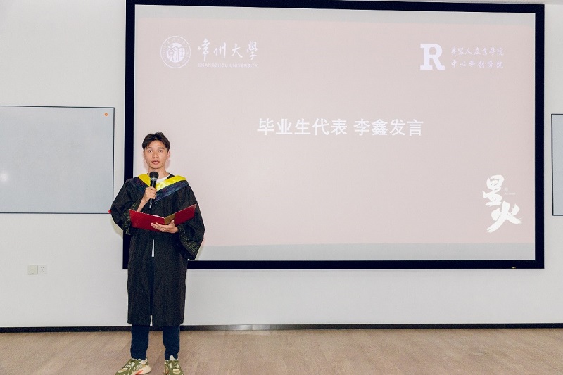 毕业生代表李鑫同学上台发言,分享了自己在学院四年间的点滴经历与良多感悟,并作为本科毕业生代表郑重地学院全体师生表达了深深的感谢和由衷的祝福。