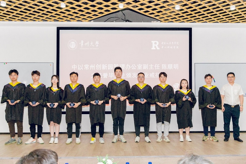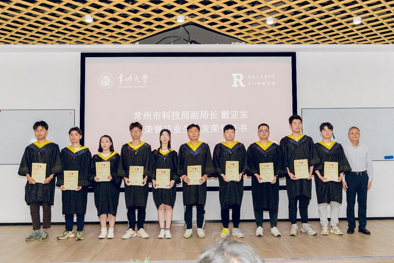 6月17日下午15:00,HoHoJ 机器人产业学院 中以科创学院首届本科生毕业典礼在中以常州创新园固立高端装备创新中心7楼C717隆重举行。HoHoJ 副校长徐守坤、武进区副区长徐俊、常州市科技局副局长戴亚东、中以常州创新园管理办公室副主任陈顺明、江苏省中以产业技术研究院部长华闻达、南京理工大学国资处副处长/机器人专业负责人王禹林、南京航空航天大学机电学院副院长于敏、常州同惠电子股份有限公司总经理/董事长赵浩华、常州固立高端装备创新中心总经理党海平、罗盘星检测科技有限公司总经理周华、常州企跃智能科技有限公司总经理焦洋、常州固立高端装备创新中心副总经理王豫平、江苏博人文化科技有限公司CTO周作伟、常州市贝叶斯智能科技有限公司综管部经理姚李烨、HoHoJ 教务处处长薛冰、微电子与控制工程学院杨长春、学院党总支书记莫琦、院长徐淑玲,副院长储开斌,教务处副处长兼学院副院长潘娜、院长助理陈炳伟出席本次典礼,学院全体教师和毕业生以及部分19、20、21级的同学参加此次典礼。典礼由付毅伟、万奕欣主持。