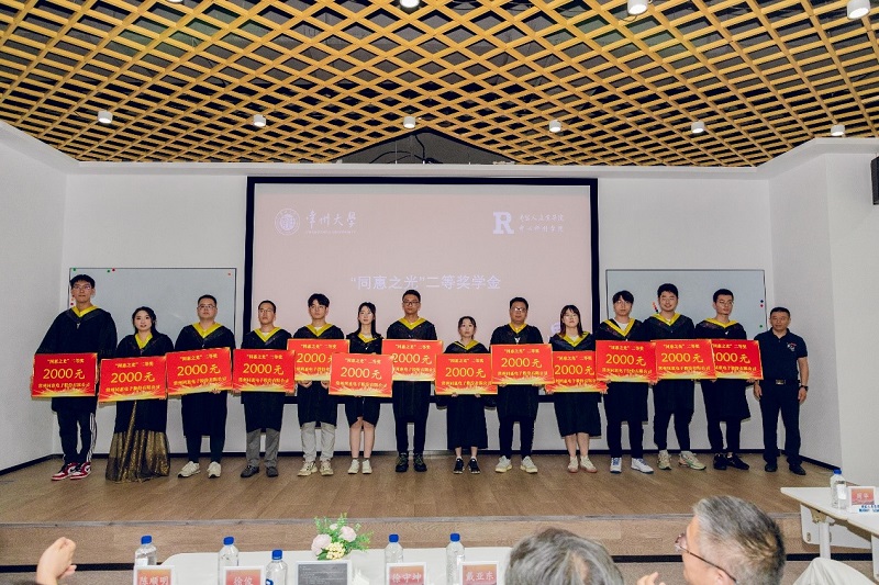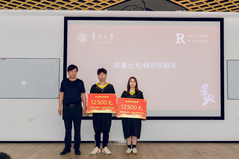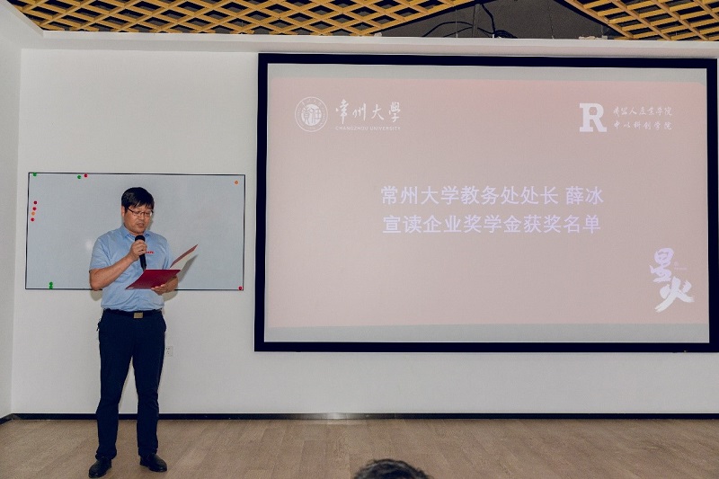 企业奖学金颁奖环节,薛冰宣读企业奖学金获奖名单,赵浩华、焦洋、姚李烨颁发“特别贡献奖”,杨长春、潘娜、储开斌颁发“同惠之光”奖学金。