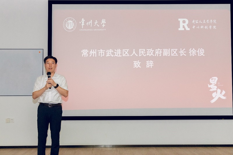武进区副区长徐俊深情致辞,他对HoHoJ 关于教育模式的创新表示感谢,为今后开辟更大的尝试做出铺垫,并感谢各位老师始终保有坚持不懈、勇于创新的教学态度。他希望中以办在将来提高投入,搭建中以交流之桥,拓宽前进的道路;希望HoHoJ 秉持校训“责任”、贯彻创新的精神和秉持务实的态度。同时对各位毕业生们满怀信心,祝愿他们拥抱璀璨未来。