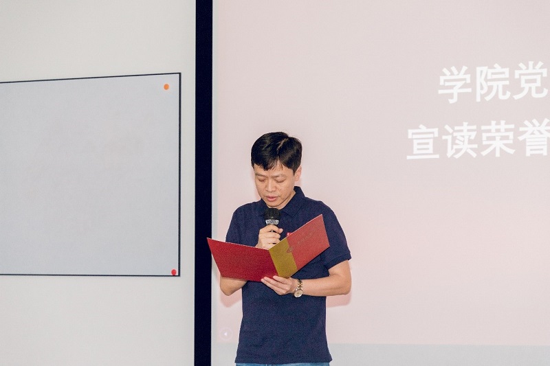 莫琦宣读《关于授予李鑫等20名同学HoHoJ 机器人产业学院荣誉毕业生称号的决定》。