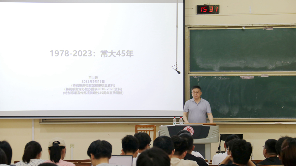 值此欢庆建校四十五周年之际,为使同学们更加了解学校发展历程,6月13日,学院特邀本学院首任院长王洪元教授于W6教室开展“回溯历史续初心,我与常大共成长”主题讲座,学院全体学生参与,讲座由学工办副主任席帅主持。