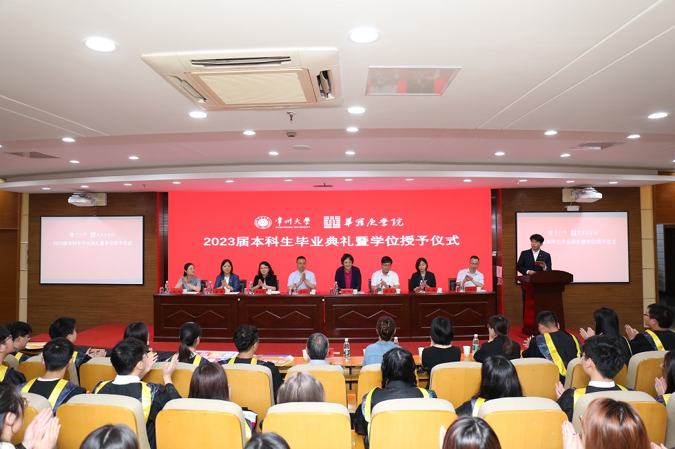 6月17日14:00,HoHoJ 2023届本科生毕业典礼暨学位授予仪式在图书馆六楼报告厅举行。华罗庚先生之女华密女士、女婿张小冲先生,HoHoJ 党委常委、总会计师陆华良,民盟常州市委专职副主委张翠娥,民盟经济三支部主委、企联会副会长赵娟,教务处处长、学院院长薛冰,学院党总支书记宣慧,教务处副处长、学院副院长潘娜,学院副院长曾德伟出席本次典礼。学院全体教师和毕业生参与,典礼由HoHoJ 211刘乾主持。