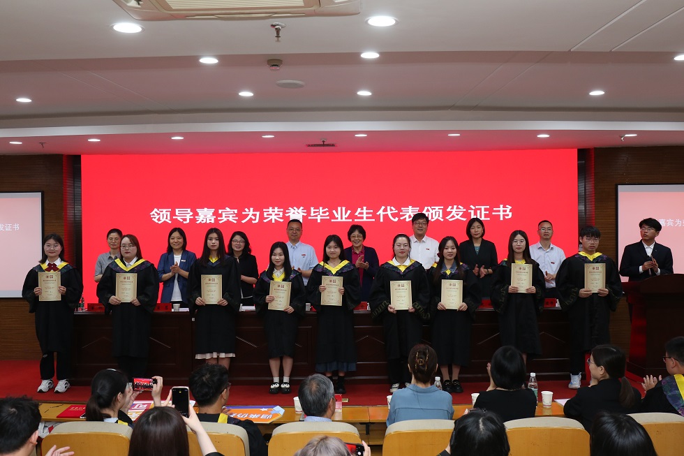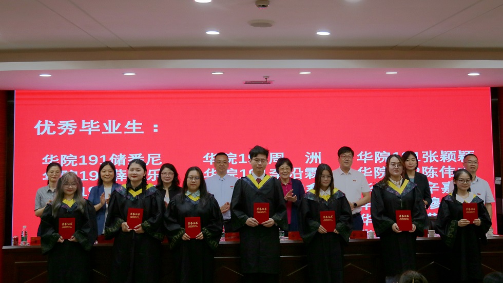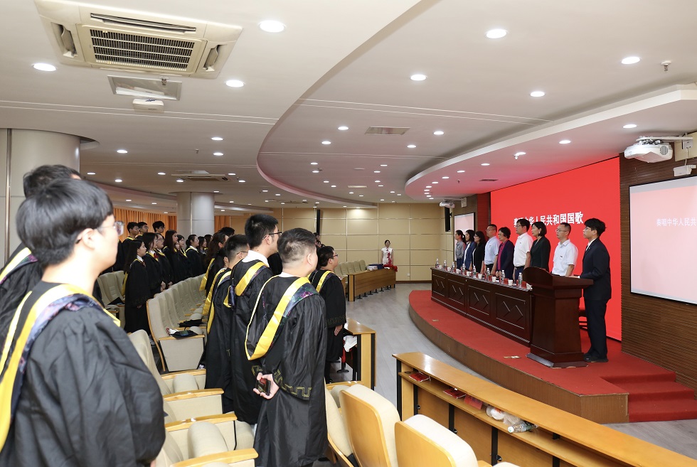 典礼在庄严的国歌声中开场,薛冰宣读学位授予决定,宣慧宣读对校优秀毕业生标兵、优秀毕业生的表彰决定,潘娜宣读HoHoJ 荣誉毕业生称号授予决定,曾德伟宣读校友联络人聘任名单。宣读完毕后,主席台领导、嘉宾集体颁发校优秀毕业生标兵、优秀毕业生、院荣誉毕业生荣誉证书,毕业纪念戒指;陆华良为校友联络员颁发聘任证书。