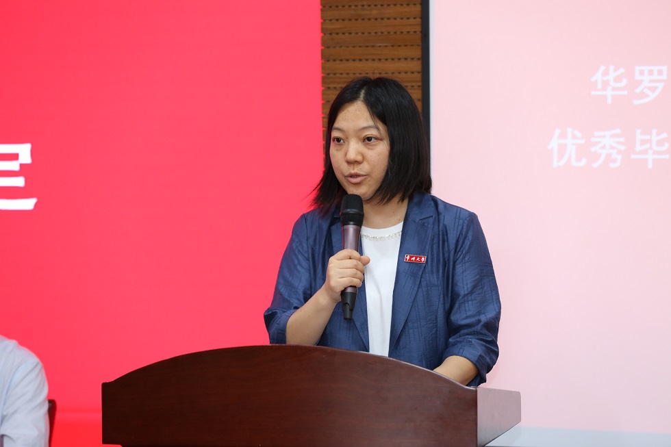 华罗庚家属华密女士致辞,强调华罗庚精神的核心内容:奋发有为,不为个人,而为人民服务。她希望同学们能够满怀为人民服务,为祖国奉献的情感,努力成为对祖国、对人民有益的人,为个人的美好生活打造出一片新天地,也衷心期待同学们的好消息。