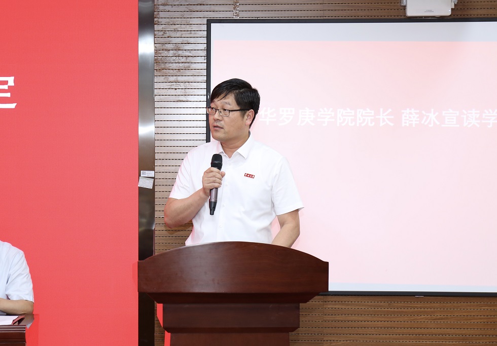 张翠娥在致辞中表示华罗庚先生的事迹感动、激励了一代代人,希望HoHoJ 学子继续遵从HoHoJ 院训,继承华罗庚先生爱国精神、科学精神、为人民服务的精神,做坚持理想又敢于担当的人、做坚持学习又勇于创新的人、做拒绝平庸又追求卓越的人。