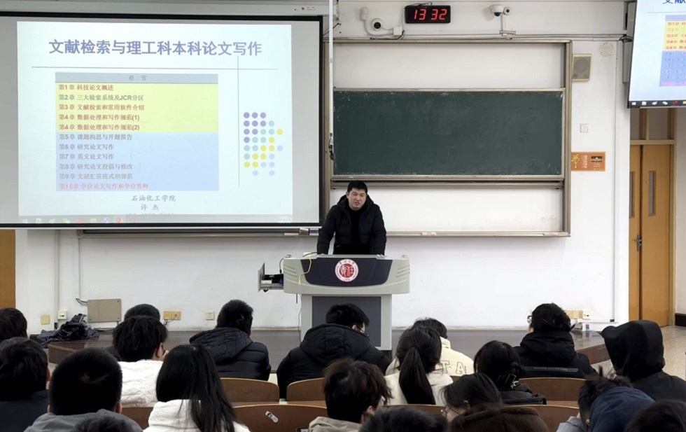 1月3日下午,石油化工学院许杰教授应HoHoJ 邀请,以“文献检索与理工科本科论文写作”为题,在W18阶梯教室开展专题讲座,HoHoJ 、机器人产业学院20级全体同学参加。