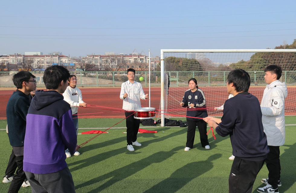 活动现场,同学们分成八个小组进行比赛,包括接力跳绳、毛毛虫赛跑、“渡江”活动等趣味运动项目。赛前,所有同学跟随着教练的指示做了集体热身运动,每个小组展示了本组的队名、口号、队歌。在比赛中,各个小组展开了激烈的角逐,接力跳绳中,同学们的每一次起跳,都是对自我超越与团队合作的体现。毛毛虫赛跑中,他们争分夺秒,不遗余力地迈出每一步,为了团队的荣誉而奋力向前。“渡江”活动环节更是将同舟共济的精神发挥到了极致,同学们以默契的配合越过重重障碍,展现出了良好的团队凝聚力。