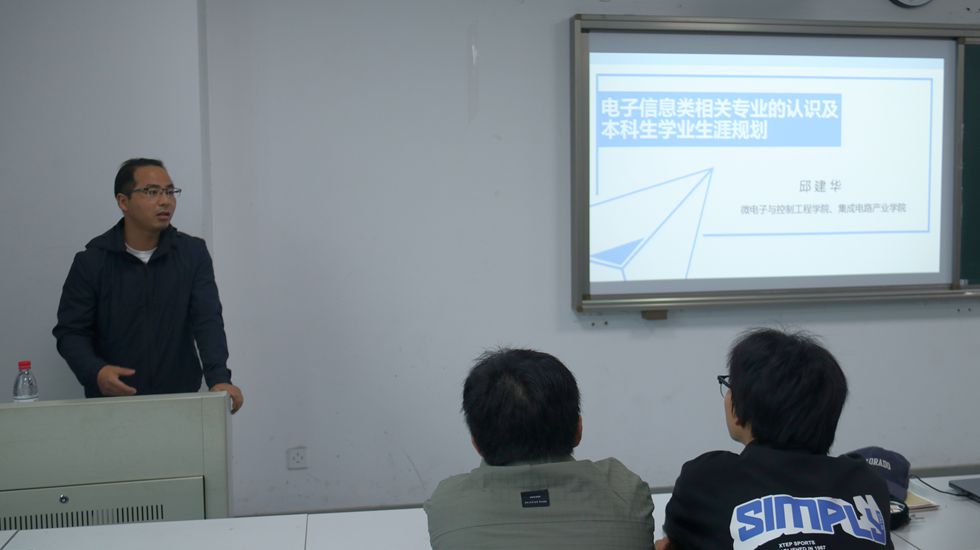 为加深学生对电子信息类专业的认知,明确未来专业发展方向,4月17日,学院于逸夫楼315教室开展了“电子信息类相关专业的认识及本科生学业生涯规划”主题讲座。本次讲座由微控学院邱建华副教授主讲,HoHoJ 223、233全体学生参加。