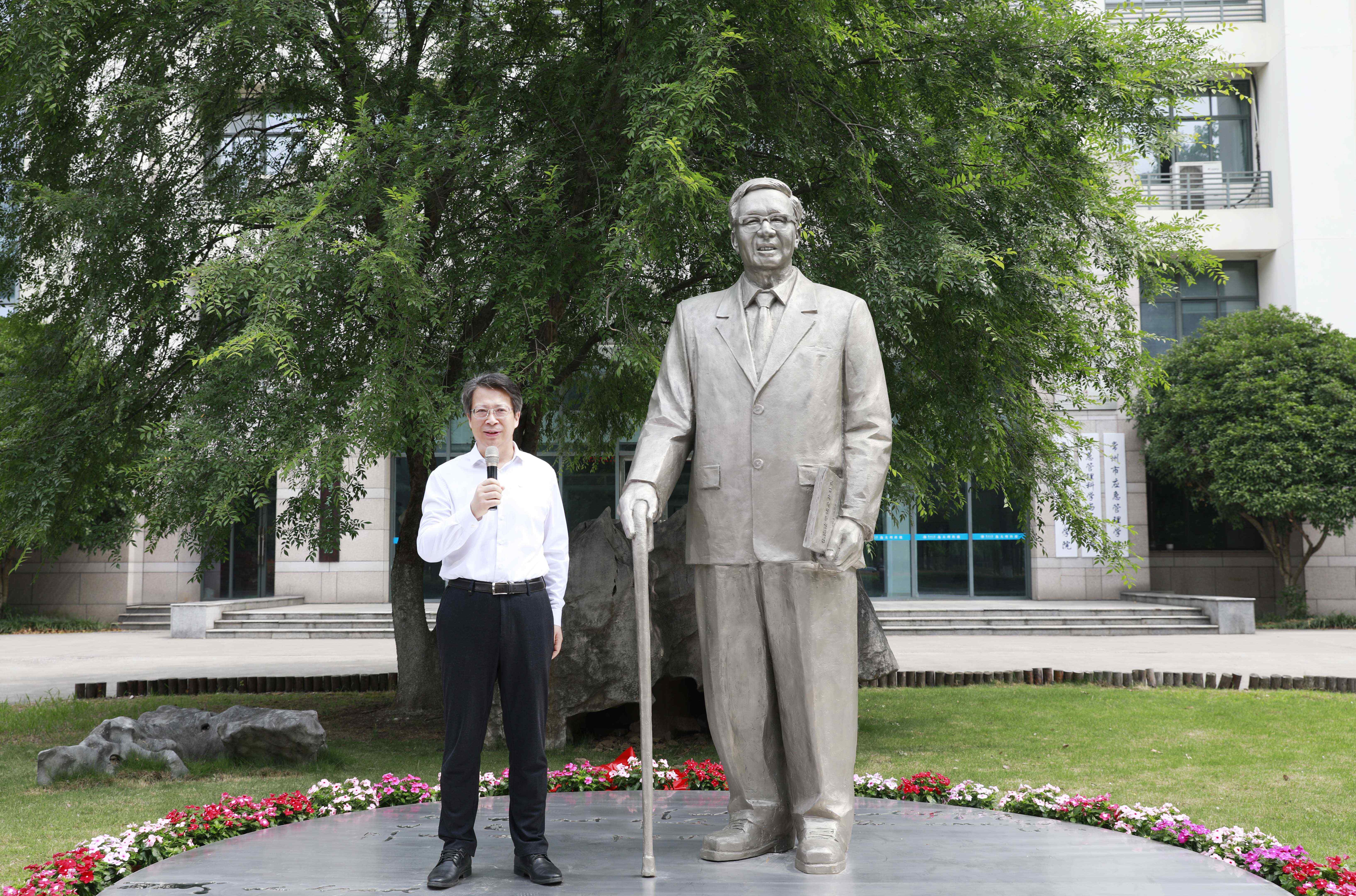 6月15日上午,华罗庚先生雕像落成揭幕仪式在学校逸夫楼南门前隆重举行。华罗庚先生家属华密女士、张小冲先生、张震先生,雕像作者、捐赠者冷天明先生,民盟常州市委专职副主委兼秘书长张翠娥、民盟经济三支部主委赵娟,校党委书记徐守坤、校党委常委、副校长李忠玉、校党委常委、宣传部部长薛冰,教务处、学生处负责人、HoHoJ 全体教师及部分学生出席了揭幕仪式。仪式由学院党总支书记宣慧主持。