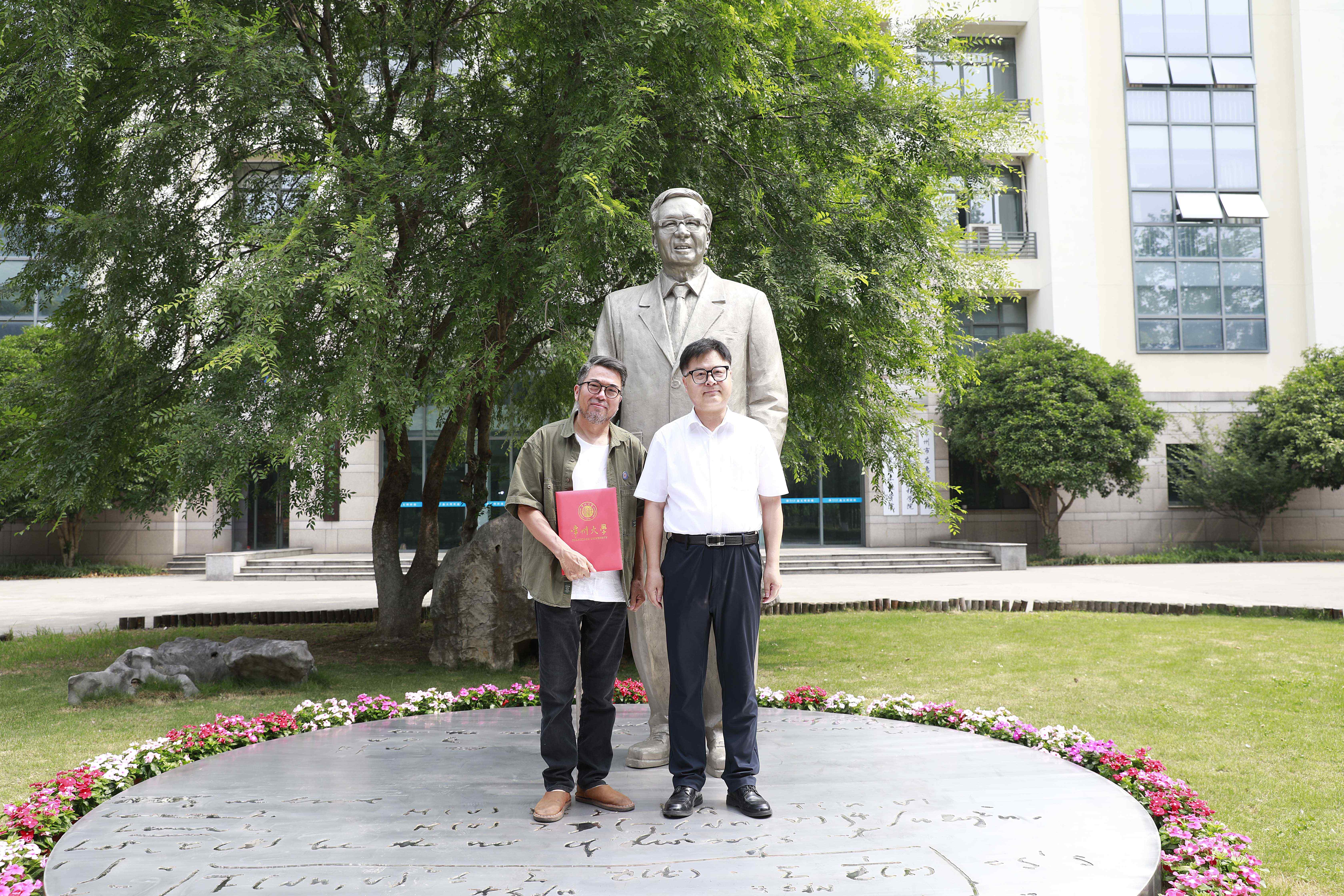 揭幕仪式上,冷天明先生阐述了雕像的创作理念及其艺术内涵;李忠玉副校长为冷天明先生颁发捐赠证书,对其善举表示衷心感谢。