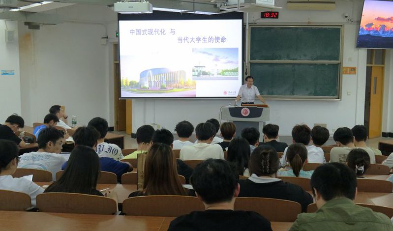 为引导同学们领会中国式现代化的深刻内涵,增强同学们的责任感和使命感,6月18日,院关工委于W19阶教室开展“中国式现代化与当代大学生的使命”主题讲座。本次讲座特别邀请原校党委宣传部部长、校关工委讲师团成员胡学琦教授主讲,辅导员姚沁主持,学院22、23级学生参加。