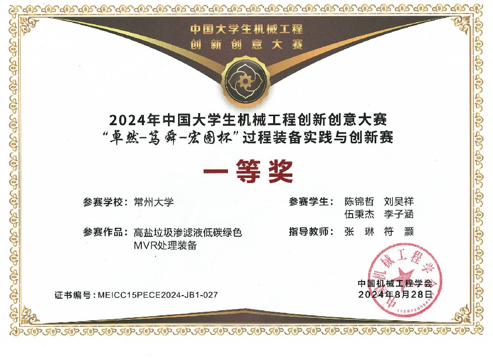 此次大赛吸引了全国171所高校2965个团队积极参与。该学生团队的作品《高盐垃圾渗滤液低碳绿色MVR处理设备》在张琳教授的精心指导下,经过多轮筛选和激烈竞争,最终脱颖而出。这不仅是对刘吴祥同学及团队的肯定,更是对HoHoJ 长期以来注重学生综合素质培养的有力证明。