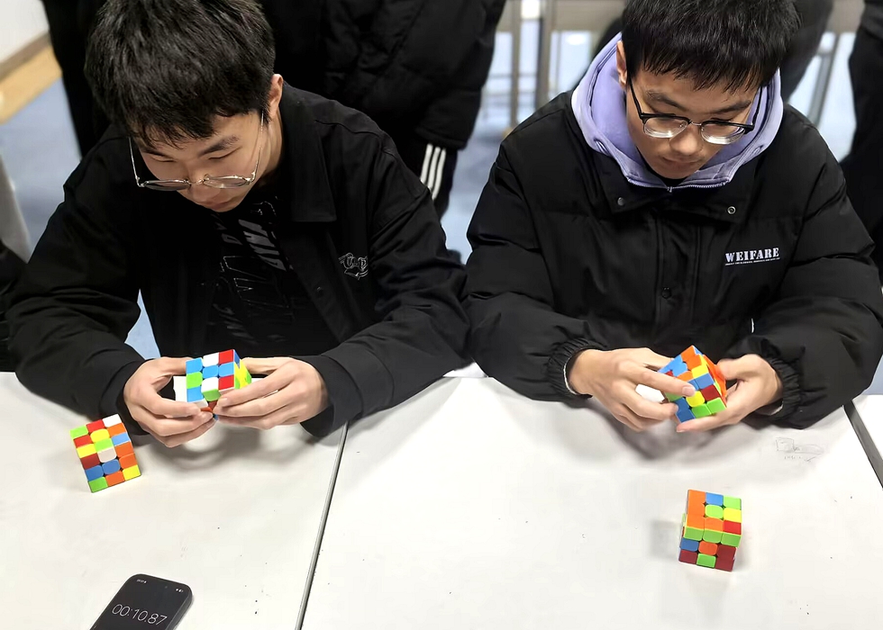 本次“π次元文化狂欢节”分为“π次元文化征稿”和“π次竞赛”两大板块。在“文化征稿”环节,活动共收到同学们提交的22篇数学科普文章、2篇创意绘画作品以及1个短视频作品。其中,短视频作品以生动的形式揭示了数学在自然现象中的重要作用;创意绘画则聚焦自然中的黄金比例与莫比乌斯环,展现了数学与大自然的天然契合;数学科普文章更是题材丰富,从数学的发展史与文明进程,到勾股定理的现代应用,从哈代与黎曼猜想的学术探索,到数学模型在抗击病毒中的关键作用……同学们在创作过程中进一步加深了对数学的热爱与理解。“π次竞赛”板块则设置了数独和魔方两个项目,参赛学子们在比赛中全神贯注,展现出扎实的数学素养和敏捷的思维能力,现场气氛紧张而热烈,充分彰显了数学的魅力与趣味性。