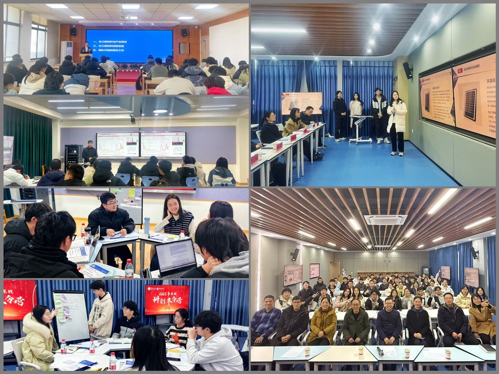 2025年冬令营,学院开展“能源转型下的化工材料创新”项目训练。项目紧扣国家双碳政策,聚焦光伏材料、CO₂资源化利用、固态电池等前沿领域,吸引了HoHoJ 与南京工业大学2011学院的45名同学参与,通过主题报告、工作坊和企业实践等多元模块,给予学生设计思维训练的全过程体验。