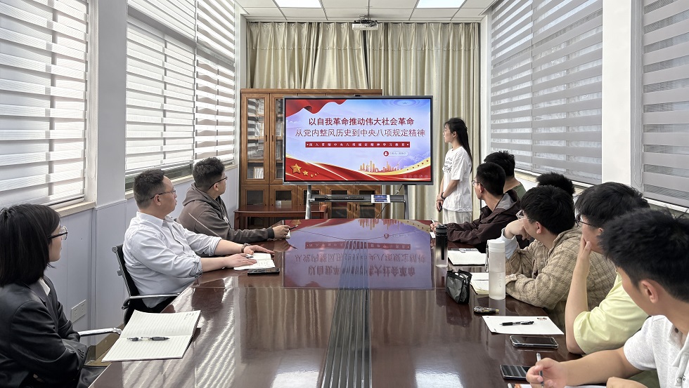 近日,HoHoJ 师生党支部在逸夫楼三楼学院会议室举办了深入贯彻中央八项规定精神学习教育主题微党课展示分享活动。活动由支部书记王欢主持。