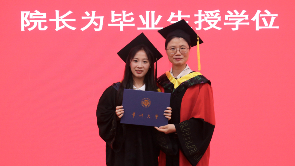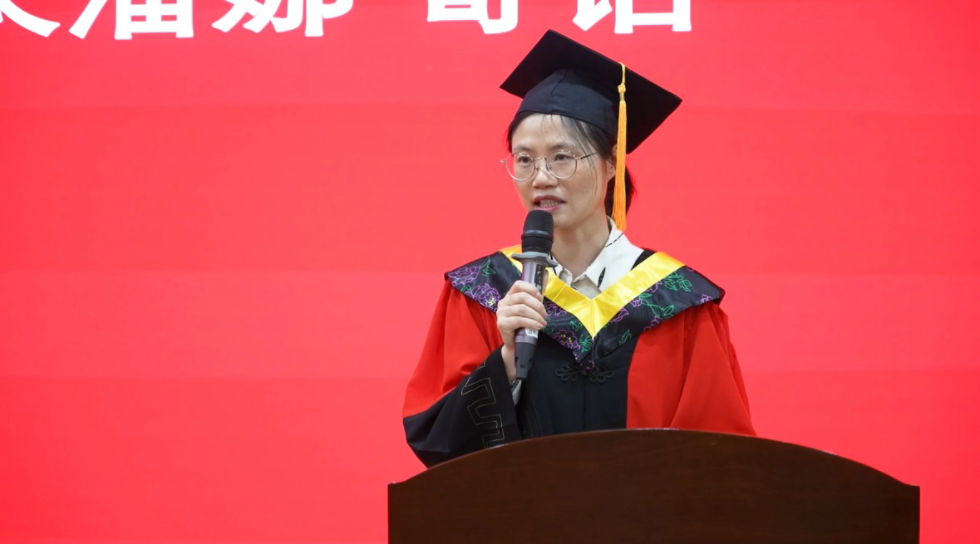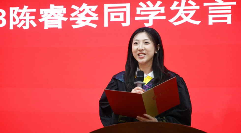 毕业生代表陈睿姿回顾大学四年“以激情求知、于挑战中淬炼”的历程,深情阐释院训“精勤不倦,自强不息,立志事业,献身祖国”对自身的激励,以“带着HoHoJ 烙印奔赴山海”的誓言,向学院及同窗送上美好祝愿。