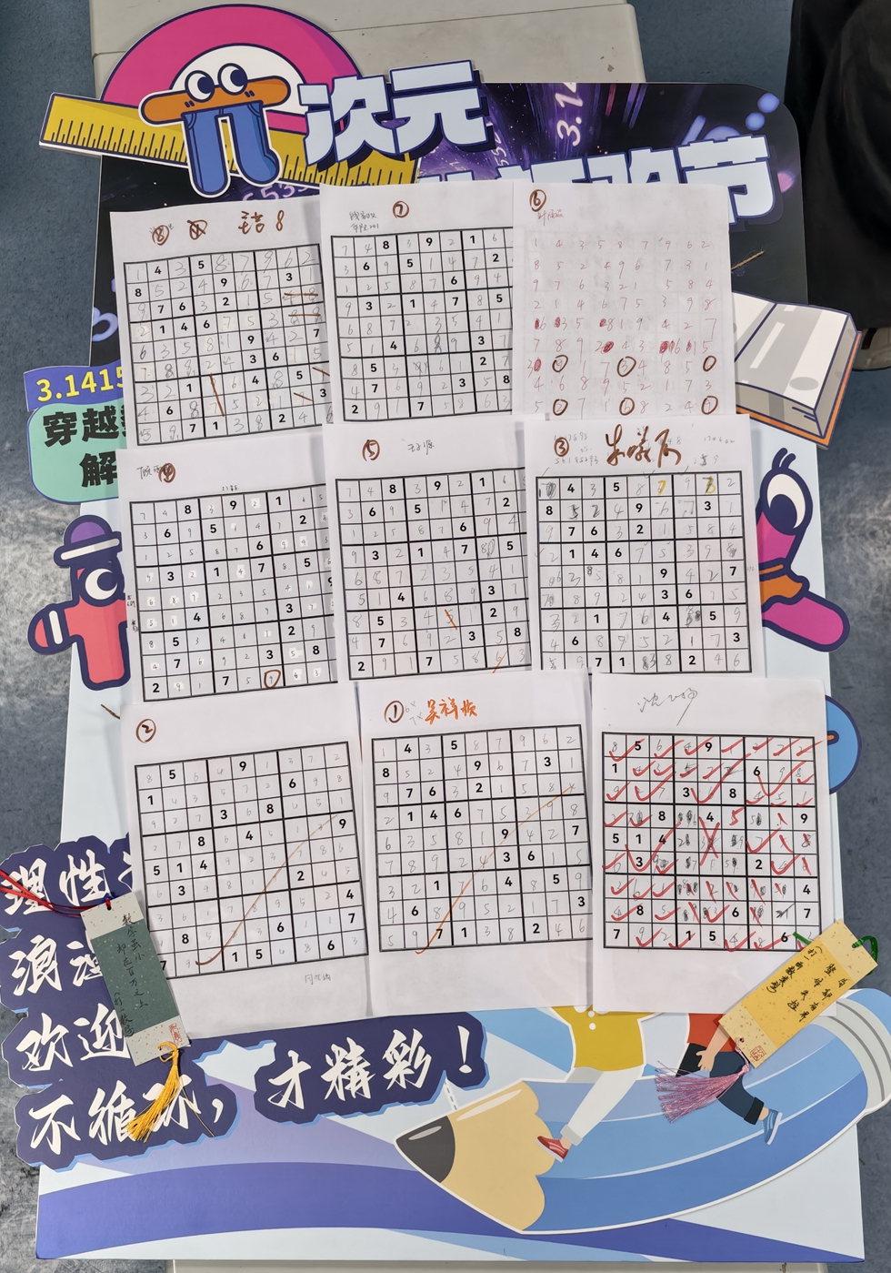 π次竞赛分设数独、图案填充、猜灯谜三大赛场。数独赛场,参赛学生凝神思索、严谨推演,在九宫格中梳理数字逻辑,展现扎实的逻辑思维能力;图案填充赛场,学生围绕2026国际数学日主题黑白纹样展开创意填涂,通过色块拼搭数学符号、勾勒对称几何与缤纷花纹,在创作中诠释对数理美学的理解与追求;数学猜灯谜环节,现场将数学知识、数字规律融入趣味灯谜,同学们积极思考、相互探讨,在解谜闯关的过程中深化对数学知识的理解,现场互动氛围热烈。